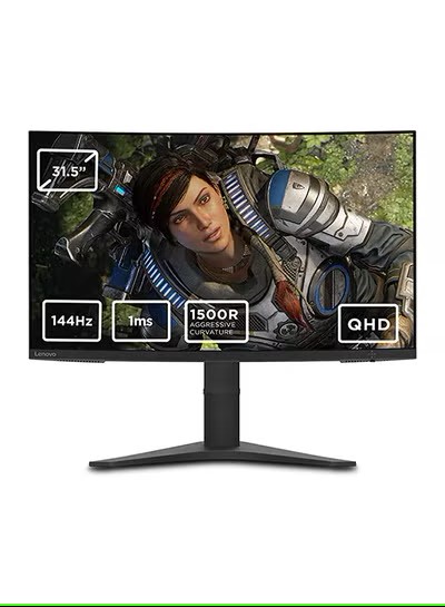 Lenovo 31.5 inch LED Gaming Curved QHD Monitor With AMD FreeSync, 144Hz black